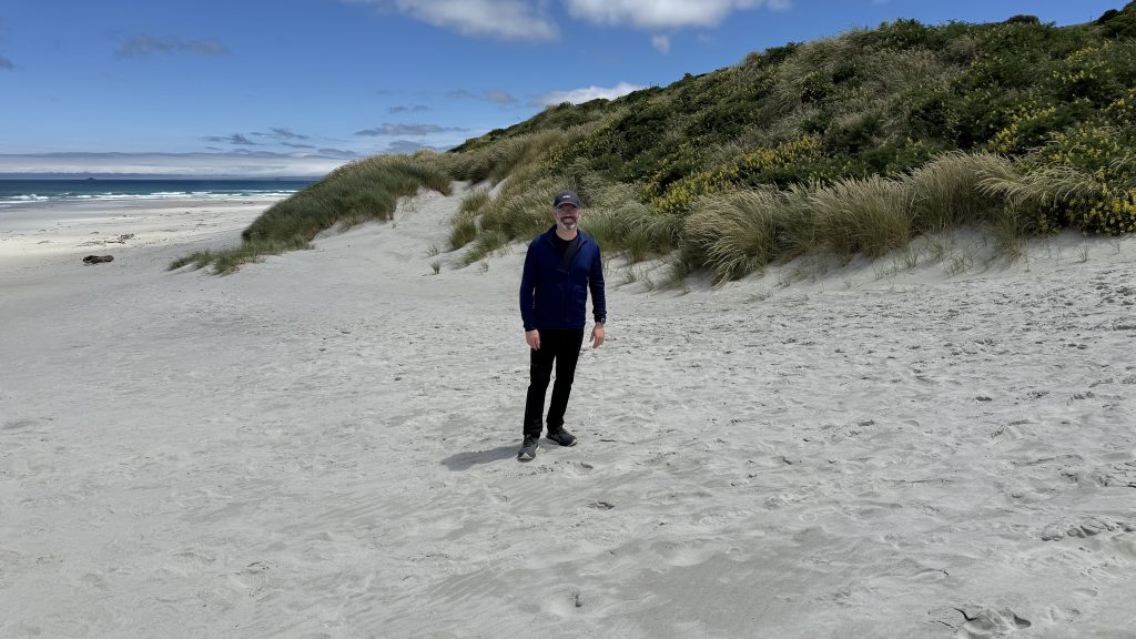 Uns führt die Route weiter in die Großstadt Dunedin und zur Otago Halbinsel, die sich direkt vor der Stadt erstreckt. Diese Halbinsel ist landschaftlich wirklich schön, zackig hügelig und mit Straßen, die sich durch die Hügel und an der Küste entlang winden. Am Ende befindet sich eine Kolonie von Albatrossen, die streng vom Nationalpark geschützt wird, man kann die Kolonie aber im Rahmen einer kommerziellen Führung besuchen und die Vögel von einem Unterstand aus beobachten, wie toll! Es ist Brutzeit und die Elternvögel wechseln sich mit dem Brüten ab, so dass immer ein Vogel auf einem Ei sitzt. In dieser Zeit ist daher die Sichtung von Albatrossen quasi garantiert, allerdings ist das Ganze dann auch eher statisch, Brutgeschäft ist ja eher was ruhiges. Als „Bonus“ kommt tatsächlich noch ein Albatros geflogen und dreht einige Runden über der Kolonie, wir können beobachten wie majestätisch der Vogel fast ohne Flügelschlag gleitet. Sehr schön 🙂 Am nächsten Tag fahren wir zu einer benachbarten Kolonie von Gelbaugenpinguinen, deren Bestand auf dem neuseeländischen Festland in den letzten Jahrzehnten dramatisch geschrumpft ist und hier versucht man kranke Tiere und Waisenkinder aufzupäppeln und die Kolonie an sich zu schützen. Von diesem Stopp sind wir nicht so angetan. Beim Besuch der Kolonie sehen wir nur 1 Gelbaugenpinguin in weiter Entfernung, spärlich erkennbar durch unsere Ferngläser. Das kann natürlich passieren, denn es ist ja Natur und kein Zoo. Allerdings ist auch die Aufzuchtstation sehr trist, es wirkt eher lieblos und wir sind nicht überzeugt, dass es den Pinguinen hier wirklich gut geht. Hier würden wir nicht noch einmal hingehen, vor allem nicht für den aufgerufenen Eintrittspreis.