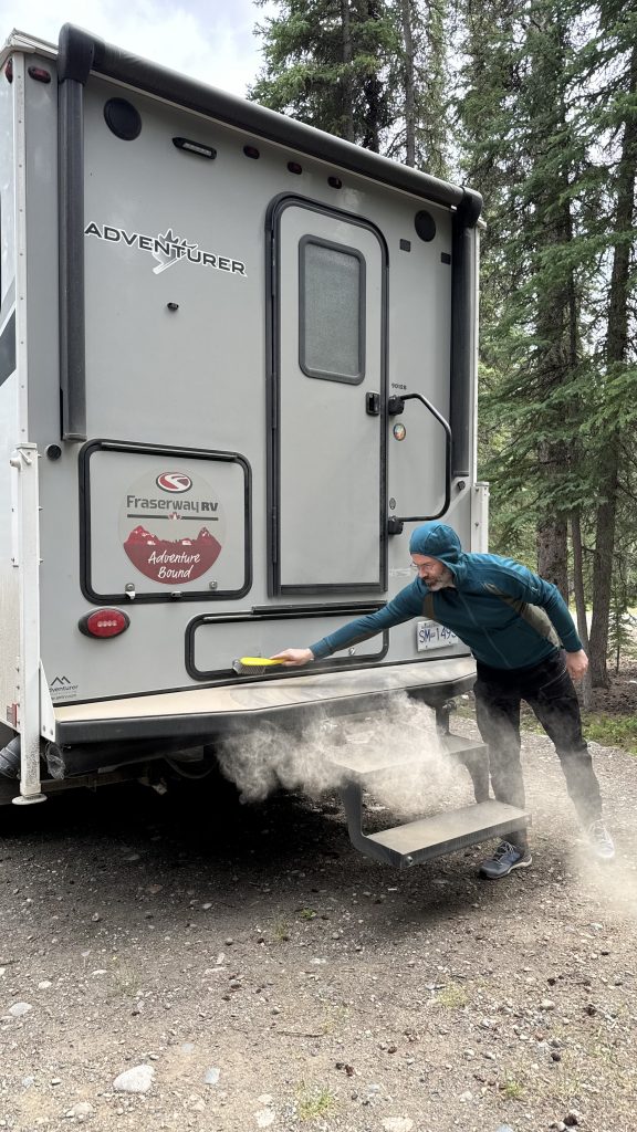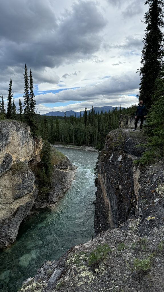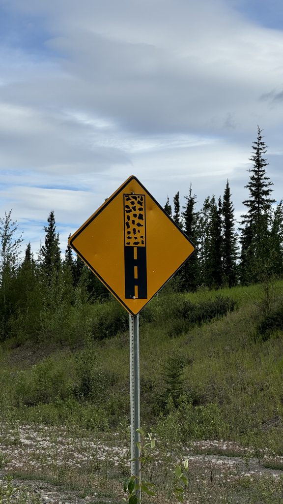 Unser Weg führt es uns über einige landschaftlich reizvolle Highways mit klangvollen Namen wie Robert Campbell, Klondike und Dempster. Ja, den sagenumwobenen Dempster Highway sind wir bis zu North Fork Pass gefahren – eine wirklich schlechte Straße, aber auch hier wunderbare Natur und tolle Panoramen. Im Yukon gibt es wirklich wenig Infrastruktur, Supermärkte und Tankstellen sind oft Hunderte von Kilometern voneinander entfernt, wir müssen jede Gelegenheit wahrnehmen und zumindest die Basics sowie Diesel kaufen. Es ist auch ein Erlebnis in diesen Geschäften einzukaufen, zu sehen was man alles in diesen kleinen Läden bekommen kann – oder eben auch nicht. Auf kleinem Raum wird eigentlich alles verkauft, was man hier so für ein (einfaches) Leben braucht. Die Campingplätze entlang unserer Route sind ebenfalls eher schlicht ausgestattet, fließendes Wasser gibt es nirgends. Häufig liegen die Plätze aber idyllisch an klaren Seen oder Flüssen und so erfrischen wir uns ab und zu im eiskalten Nass.