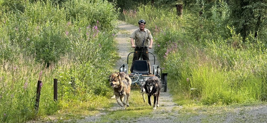 Nach dem Hochsommer in Fairbanks lässt die Wettervorhersage eine Schlechtwetterphase erkennen, und das genau dann, wenn wir wieder in die Natur wollen, zum Denali. Mit 6.190m ist er der höchste Berg Nordamerikas und er steht relativ einzeln, man soll ihn von einem bestimmten Punkt aus im Denali Nationalpark direkt 5.500m hoch aufragen sehen. Nun, wir wussten dass wir zu diesem Punkt nicht kommen würden, denn durch einen Erdrutsch ist die einzige Zufahrtsstraße in den Nationalpark ab Meile 43 seit einiger Zeit für mehrere Jahre gesperrt. Aber den Berg an sich kann man bei gutem Wetter auch über hunderte Kilometer Entfernung sehen. Im Nationalpark gibt es einen weiteren Spot an Meile 9, von dem aus man den Berg in 200km Entfernung sichten kann. Also auf, vor dem schlechten Wetter wollen wir noch im Park sein, um den Berg nicht zu verpassen. Machen wir es kurz: Der Berg wollte nicht. Am ersten Tag lag zu viel Rauch von Waldbränden in der Luft, am 2. Tag Regen, am 3. Tag Wolken und am 4. Tag Regen. Trotzdem war der Besuch im Park wirklich toll! Zunächst haben wir uns die Huskys des Parks angeschaut, es sind Arbeitstiere, die im Winter als Schlittenhunde eingesetzt werden und nur so ist es dem Nationalpark möglich hier seine Arbeit zu verrichten. Um den Nationalpark und dessen Tiere besser zu sehen, wollen wir weiter reinfahren. Die Parkstraße ist nur bis Meile 15 für den Privatverkehr geöffnet und so haben wir uns einen Bus gebucht, der bis Meile 43 und zurück fährt. Auf Empfehlung unseres Reisebüros haben wir den letzten Bus genommen, Abfahrt um 18:30 Uhr und zurück erst um 23:00 Uhr! Das sind 4,5 Stunden Zeit, in denen wir viele Wildtiere gesehen haben, das war wirklich schön: Grizzly-Bären, Dall-Schafe, Elche, Rentiere, Rotfüchse, einen Baumstachler und viele Ptarmigans, die Moorschneehühner (ihr erinnert euch an die Geschichte zu „Chicken“?). Außerdem waren wir im Park noch Wandern, es war schön wieder in der Natur zu sein!