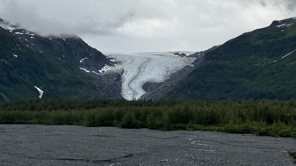 English: Post the heatwave in Fairbanks we head south to Denali National Park, where we were hoping to see North Americas highest mountain, sadly without success, as it hides behind clouds/ rain/ wildfire smoke. Still, we had a great time in the National Park seeing many wild animals, including grizzly bears, mooses, caribous, dall sheep, red foxes, a porcupine and many ptarmigans. We then stopped over in Anchorage, where we did not seem to find much of tourist things to see, and hence headed straight on to the Kenai Peninsula. There, we saw ample wildlife including salmon in the rivers, bald eagles everywhere, sea otters in the ocean waters, a group of humpback whales hunting together, and of course hundreds of puffins. This was only topped by seeing many glaciers along the Kenai Fjords, including a tide water glacier actively calving in front of our own eyes. Very impressive takeaways from our Alaska tour so far!