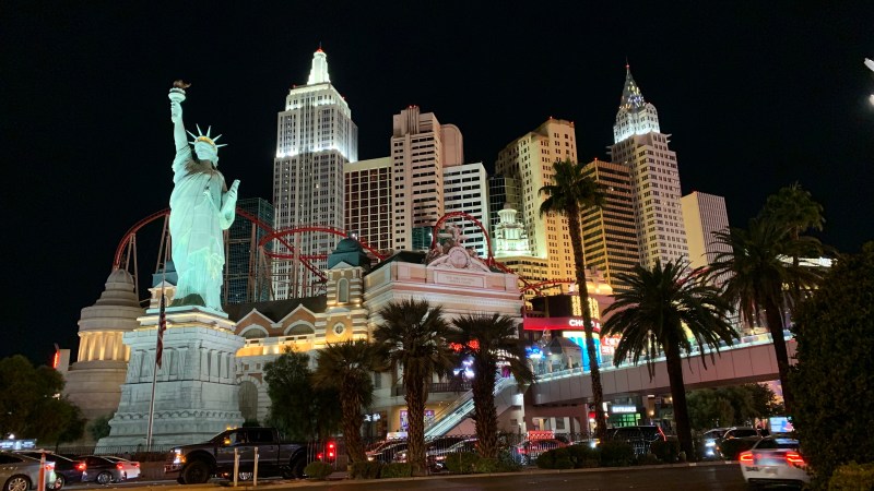 Nach unserem Fußmarsch entlang des Strips und seinen ganzen bekannten Hotels, waren wir abends noch in der Show von David Copperfield, was wirklich spektakulär war. Das war der Auftakt zum typischen Las Vegas-Feeling: Pomp, Glitzer, halbnackte Menschen im Rausch und irgendwie alles übertrieben. Die Besucher, die Häuser, die Shows. Es hat seinen eigenen Reiz, für uns ist eine Nacht dort aber absolut ausreichend… Nach der Rückkehr in unser Hotel The Strat am späten Abend sind wir noch auf den Turm hochgefahren, von dem wir eine grandiose Aussicht über die ganze Stadt hatten.