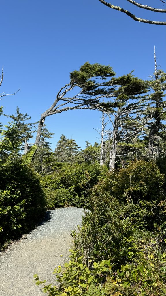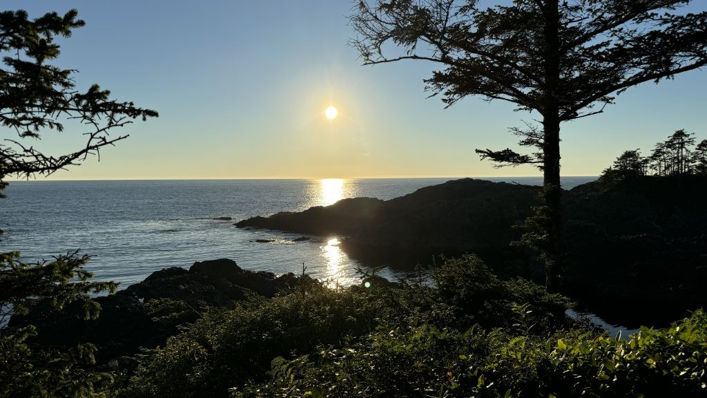Wir haben die raue Westküste erlebt, im und um den Pacific Rim Nationalpark und in den Städtchen Ucluelet und Tofino. Wir sind kilometerlang durch Regenwälder gewandert und durften toll angelegte Wanderwege genießen, die immer wieder spektakuläre Blicke auf die vom Sturm geprägte Küste erlaubten und zu tollen Stränden führten. Kein Wunder, dass man hier im Winter „Storm watching“ buchen kann, da geht es bestimmt turbulent zu. Bei unseren Strandspaziergängen fällt uns auf, wie viel Treibholz hier angeschwemmt wird und inselweit die Stände dekoriert, ihr seht das auf den Fotos.