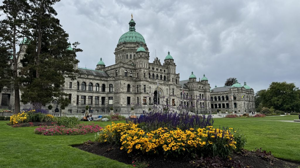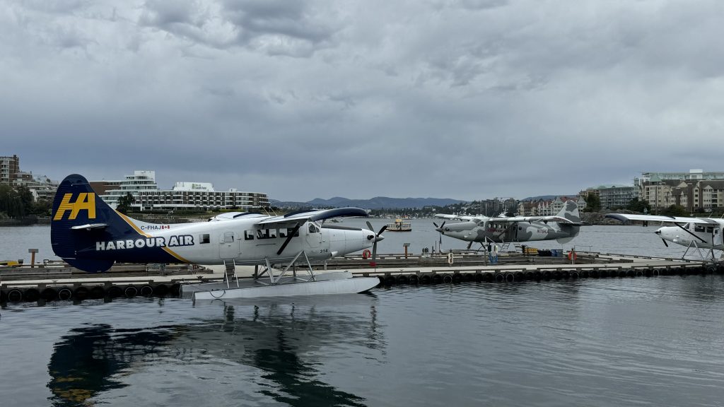 Natürlich waren wir auch in Victoria, der Hauptstadt von der Provinz British Columbia. Diese westlichste kanadische Provinz alleine ist rund 3x so groß wie Deutschland und hat dabei nur 5 Millionen Einwohner, die Hälfte davon lebt geballt im Großraum von Vancouver, da bleibt viel Platz im Rest des Landes. Zurück nach Victoria: Die Innenstadt ist schön angelegt mit vielen Blumenrabatten und überall Blumenkörben, vieles an Victoria wirkt sehr Englisch. Eindrucksvoll sind auch die Wasserflugzeuge, die zwischen den Booten im Hafen starten und landen. Der Großraum Victoria hat 400.000 Einwohner und die fahren offensichtlich alle gerne Auto – und das gleichzeitig. Somit haben wir das erste Mal seit 14 Wochen im Stau gestanden.