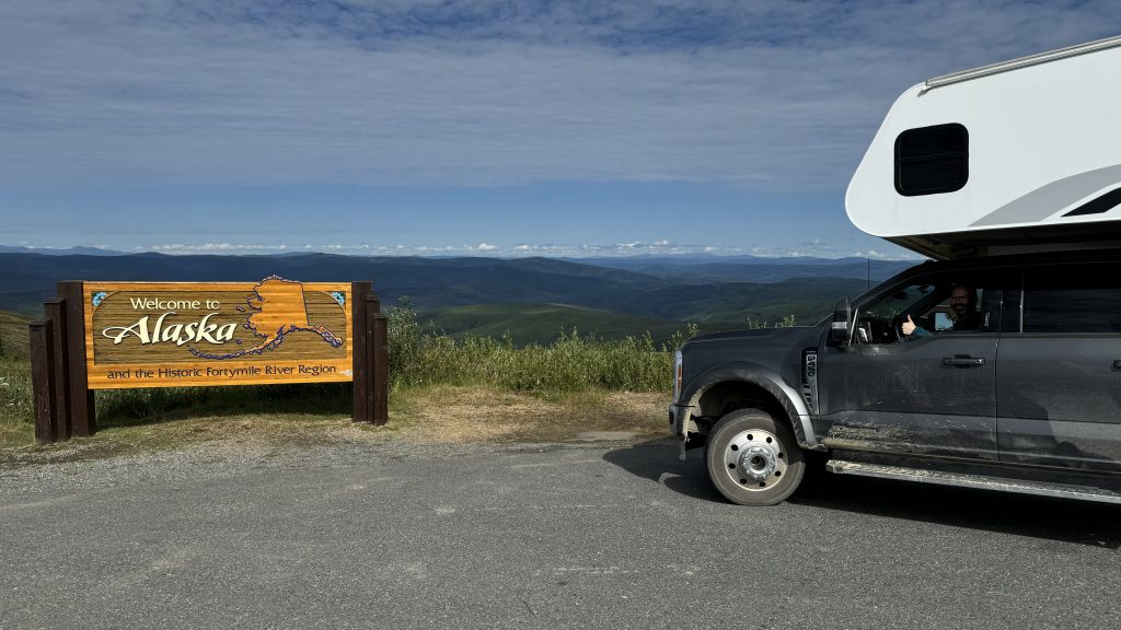 Weiter geht es in den Norden und als diese Zeilen entstehen, sind wird am (vermutlich) nördlichsten Punkt unserer Reise und schwitzen bis spät abends. Wir sind in Alaska, noch nördlich von Fairbanks und eine Hitzewelle begleitet uns. Wer auf Linderung in der Dämmerung hofft, muss lange warten, heute geht die Sonne erst um 23:37 Uhr unter.