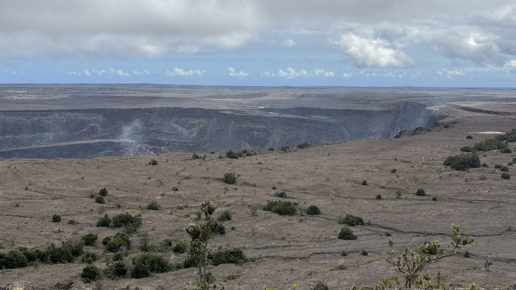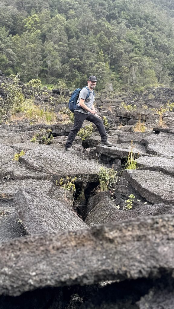 Danach geht es 5 (See-)Tage lang nach Westen über den Pazifik, bis wir die Insel Hawaii erreichen, auch ‚Big Island‘ genannt, es ist nämlich die größte Insel des gleichnamigen Bundesstaats Hawaii. Dort halten wir zunächst in Hilo im Osten der Insel für 2 volle Tage und wir erkunden zunächst den bekannten Kilauea Vulkan-Nationalpark per Mietwagen. Wir sind beeindruckt vom Hauptkrater, der mit seiner unfassbaren Breite und Tiefe für uns kaum zu greifen ist. Ein weiterer Krater lockt uns zu einer Wanderung: Wir steigen hinab in die Caldera und durchqueren ihre unwirkliche Landschaft mit schwarzem Gestein, das teilweise spektakulär aufgebrochen ist. An den Bruchstellen wachsen dann auch immer wieder genügsame Pflanzen inmitten dieser kargen Einöde. Bereits von oben hat uns der Anblick fasziniert, es war ein tolles Erlebnis mitten durch einen aktiven Vulkan zu laufen. Auf der Wanderung haben wir sogar die Möglichkeit durch eine Lavaröhre zu laufen, das lassen wir uns natürlich nicht entgehen.
